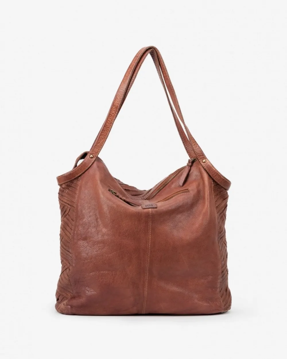 Washed And Vegetable-Tanned Cow Leather Shopping Bag. Complex Handmade Work, Seams And Studs. Back Pocket, And Zip Closure. Coleccion:Mcbee