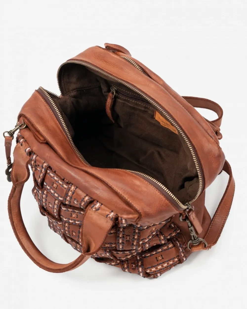 Bauletto In Washed Calf And Vegetable Tanned Leather. Combination Of Hand-Braided Technic And Bicolor Stitching. Zip Closure And Removable And Adjustable Shoulder Strap. Two Zip Pockets On The Top Of The Bag, And One On The Back Side. Coleccion:Payson