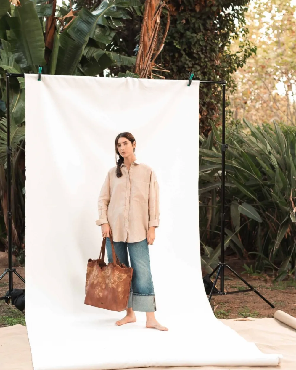 Washed And Vegetable-Tanned Bovine Leather Shopper. The Embroidery On The Front, The Contrast Of Colors, And The Irregular Edge Of The Upper Part Stand Out. Internal Pockets, And No Internal Lining Or Closure System. Material:Bovine Leather