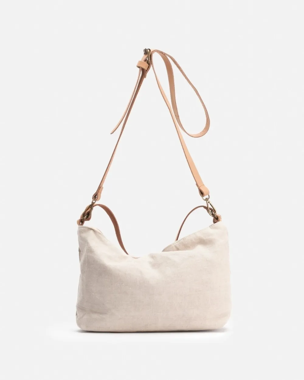 Linen Cross Bag With Adjustable Leather Shoulder Strap. Zip Closure. Coleccion:Komodo