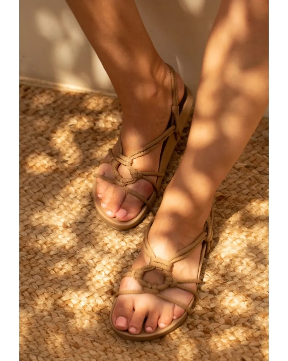Cotton And Natural Leather Sandal. Cotton Strips That Make A Series Of Knots That Hold The Foot. Anatomical Leather Sole And Rubber Sole. Coleccion:Art Deco