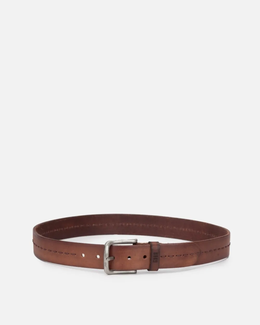Men’S Bovine Leather Belt With Handmade Stitching. Vintage Silver Buckle. Coleccion:Cooper