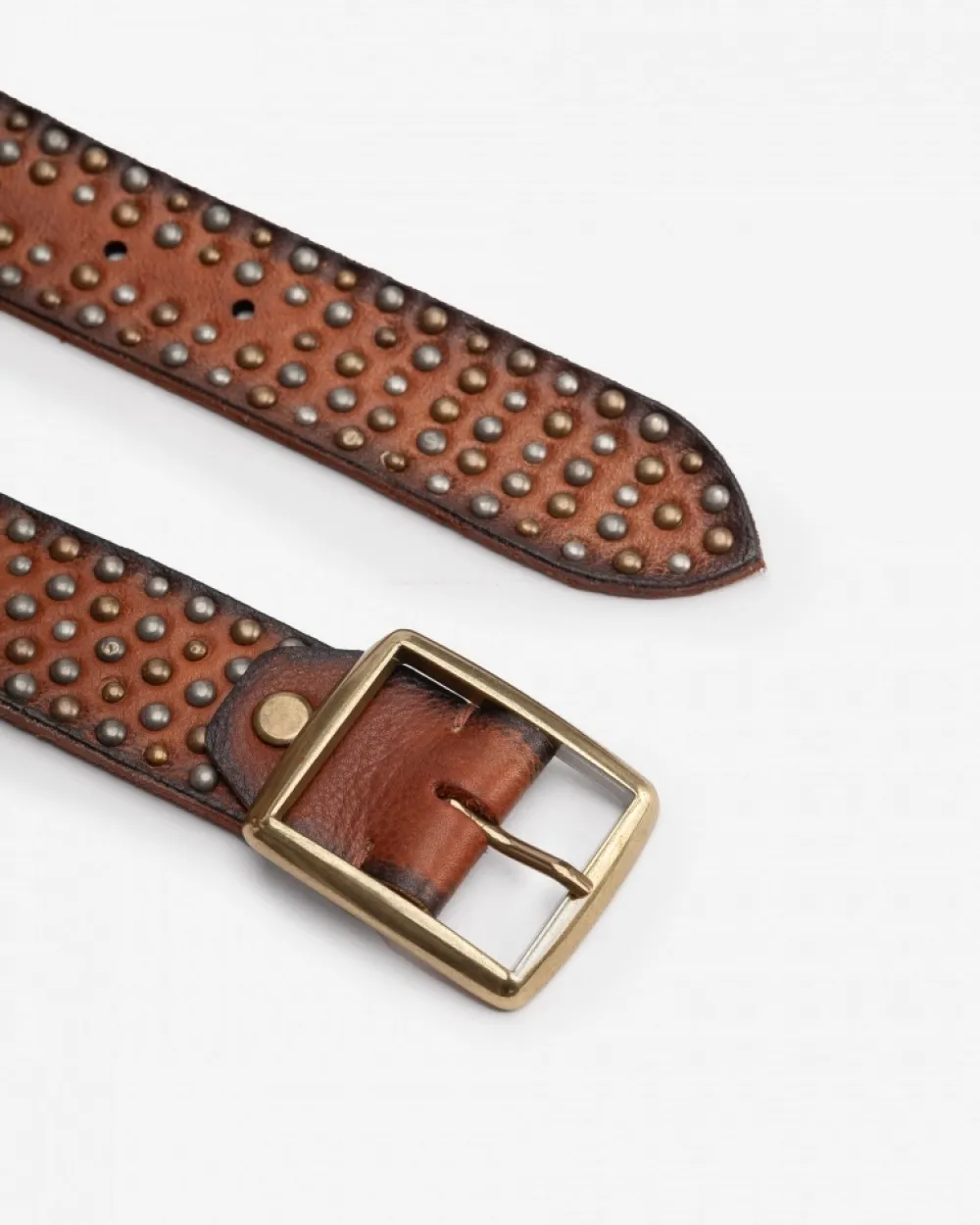 Natural Leather Belt With Gold And Metallic Studs. Vintage Effect Leather. Screw On The Back Of The Buckle For Manual Cutting. Metal Buckle. Material:Bovine Leather