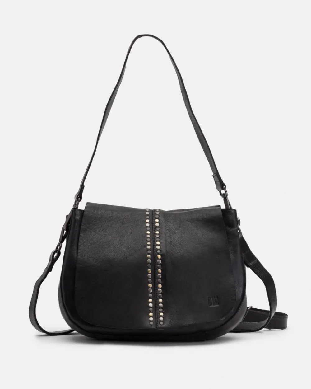 Cowhide Leather Hobo And Cross Bag With Studs, One Handle, Adjustable And Removable Shoulder Strap And Zip And Flap Closure. Coleccion: