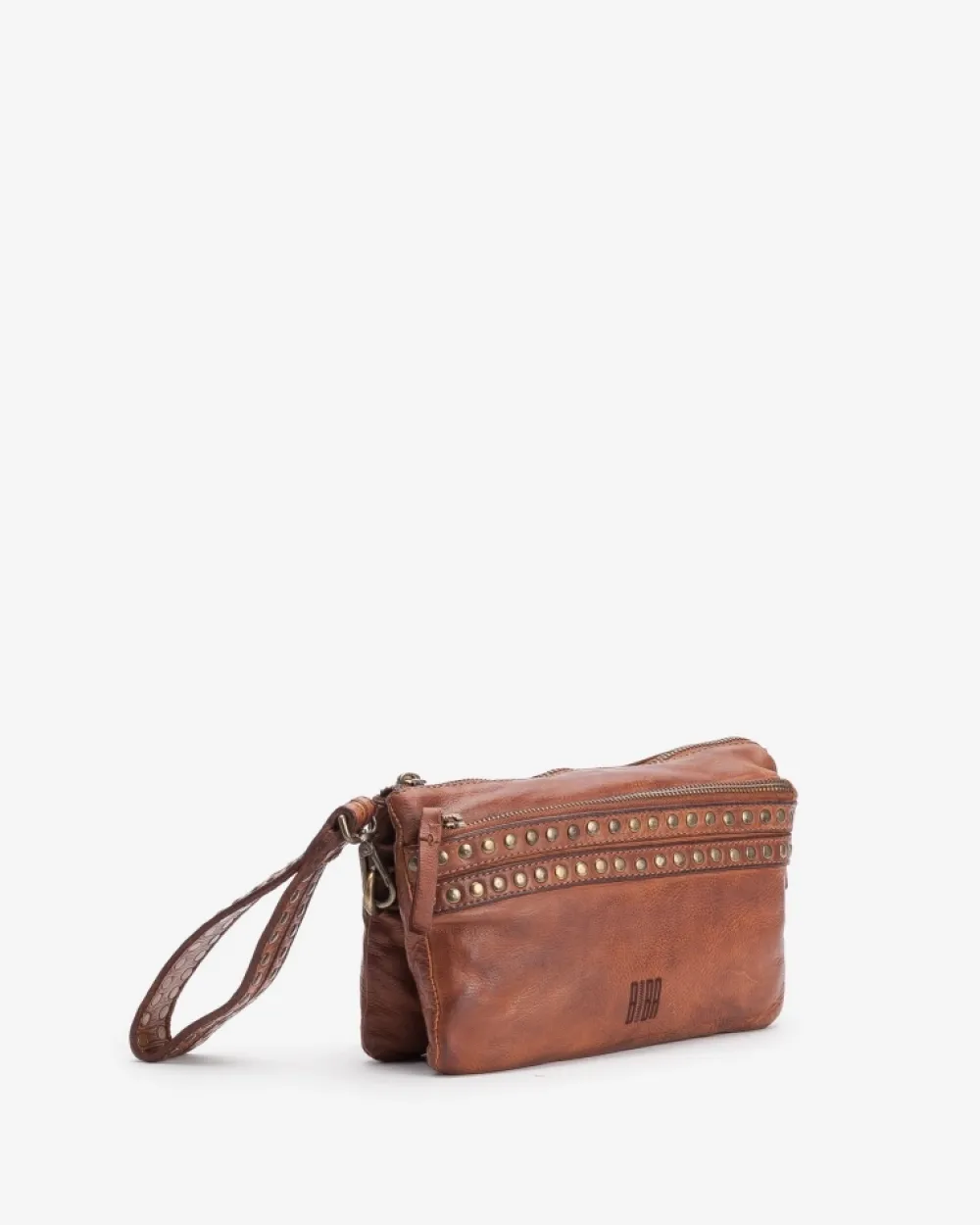 Natural And Vegetable Tanned Leather Crossbag With Gold Stud Embellishments. Removable Clutch Handle And Removable And Adjustable Shoulder Strap. Front Zippered Pocket And Multiple Inner Compartments. Coleccion:Sherman