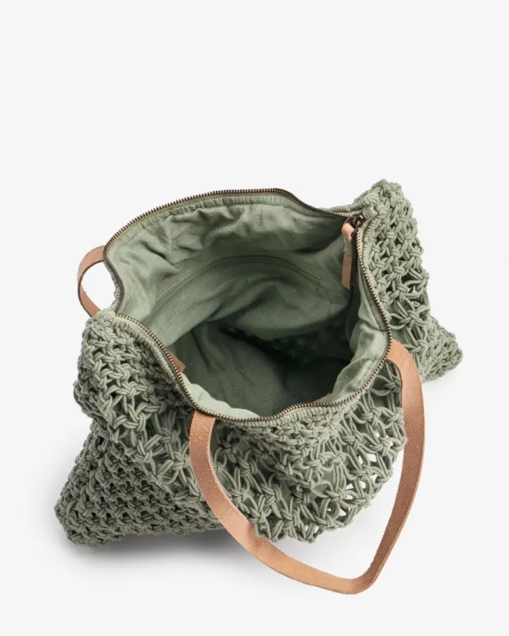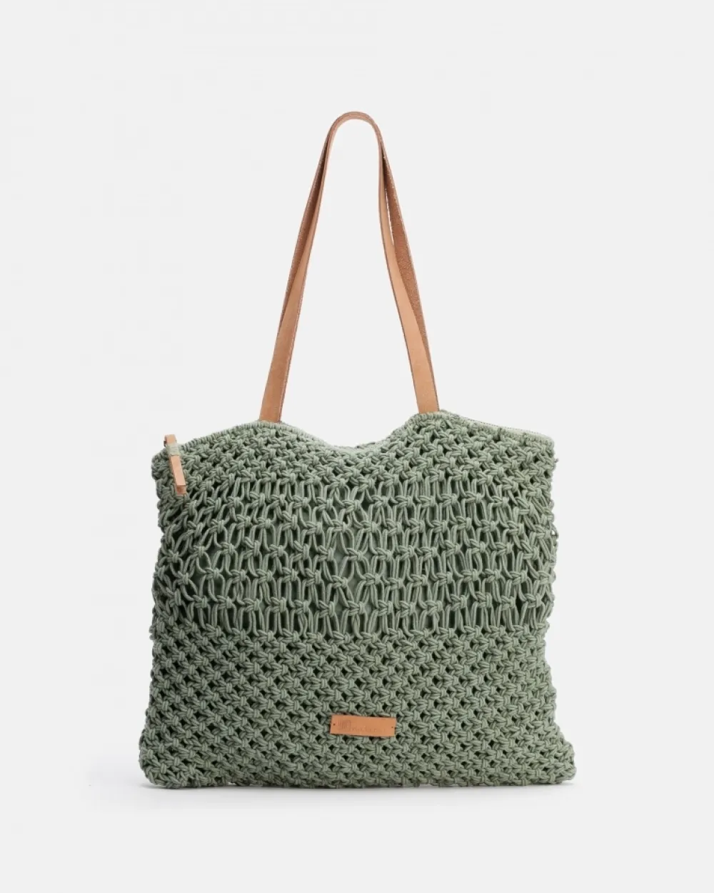 Shopper Made Of Cotton With Handmade Macrame Finish. Natural Leather Shoulder Strap. Zip Closure. Coleccion:Maldivas