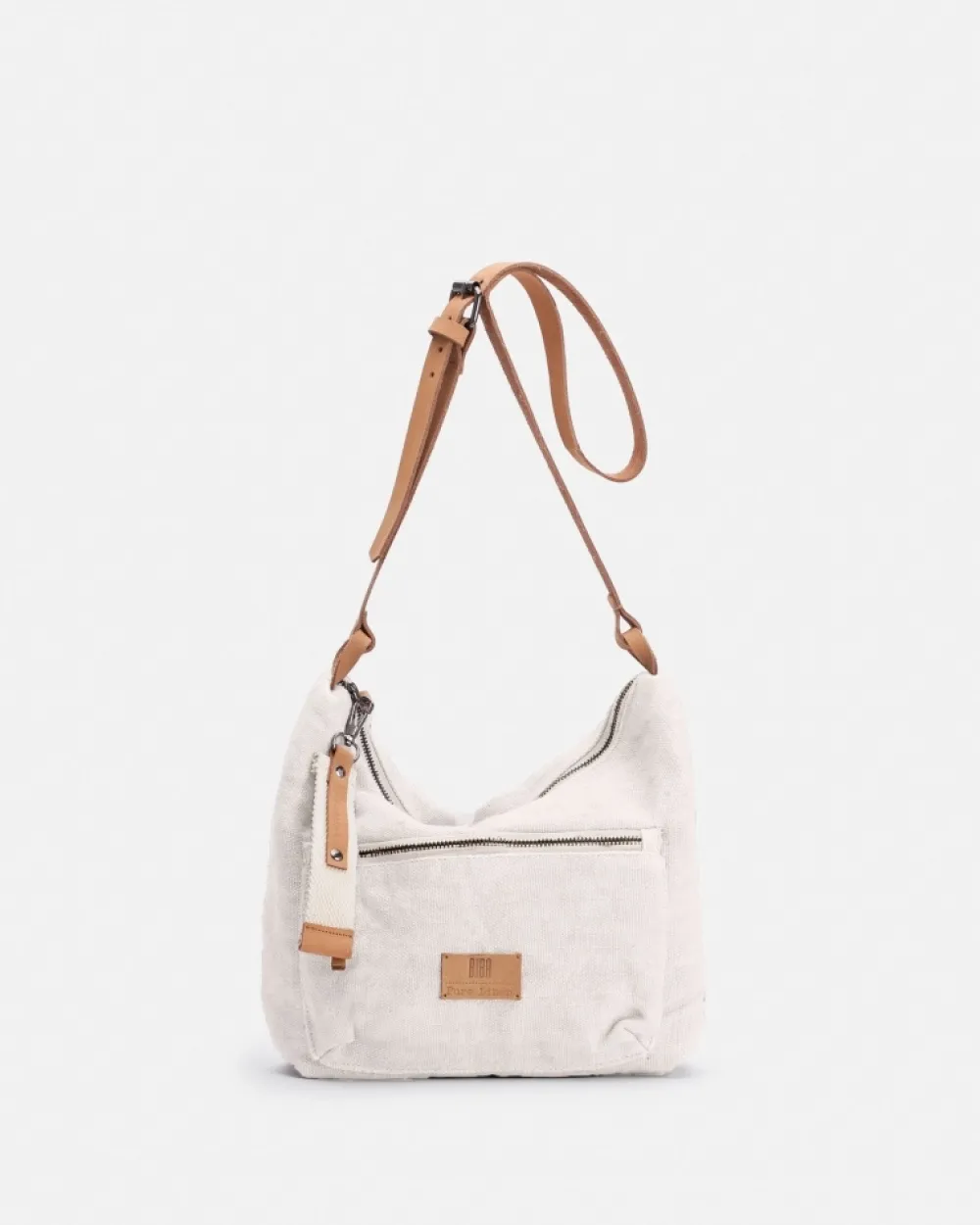 Linen Crossbag With Zip Front Pocket. Natural Leather Adjustable Shoulder Strap. Zip Closure. Coleccion:Nassau