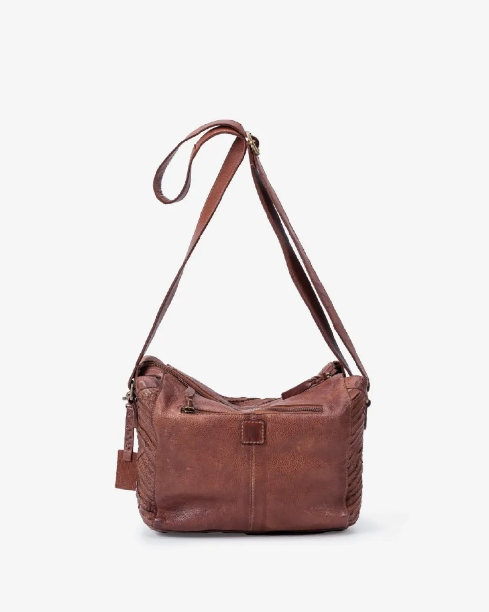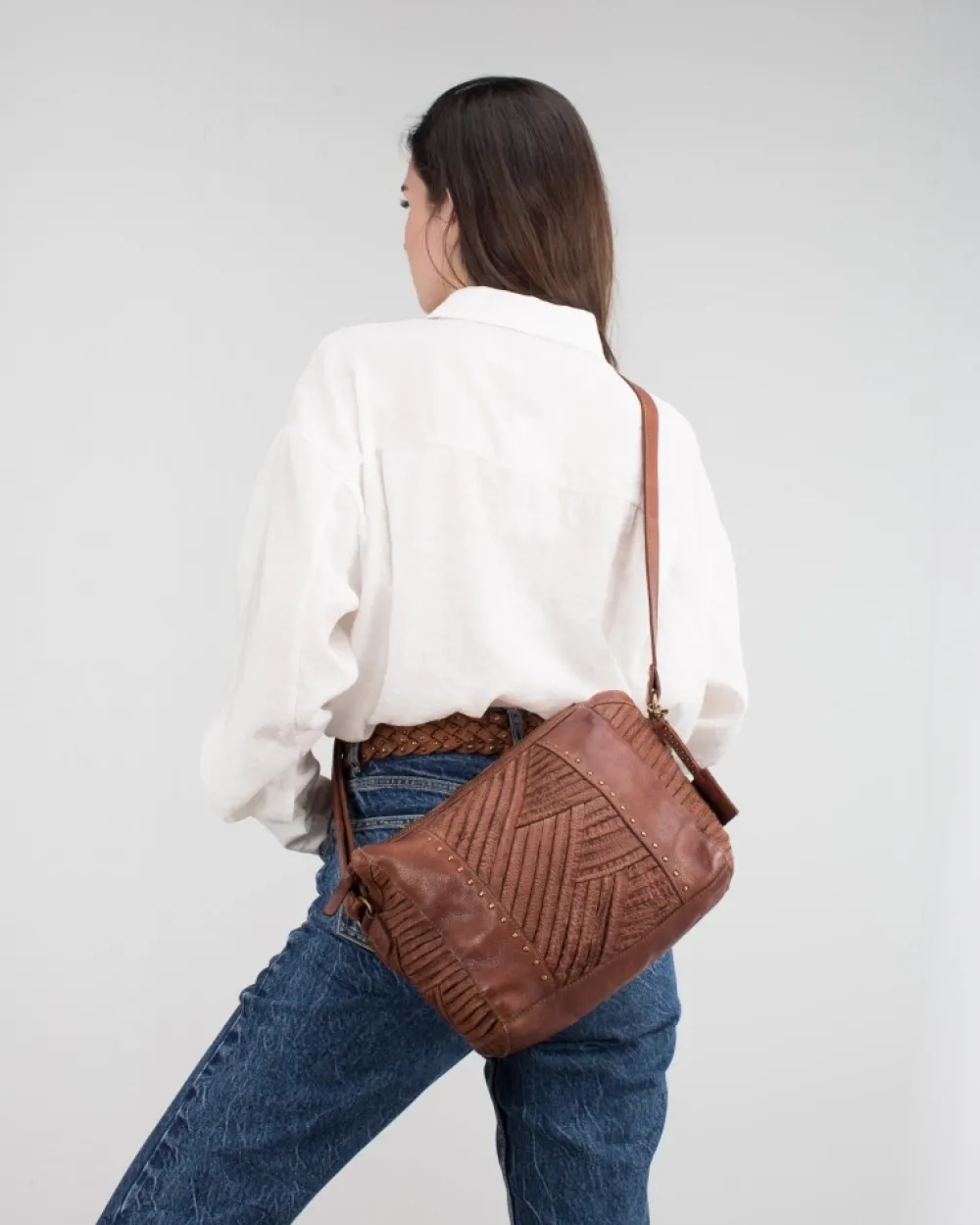 Washed And Vegetable-Tanned Cow Leather Corss Bag. Complex Handmade Work Of Seams And Studs. Adjustable Shoulder Strap. Back Pocket, And Zip Closure. Coleccion: